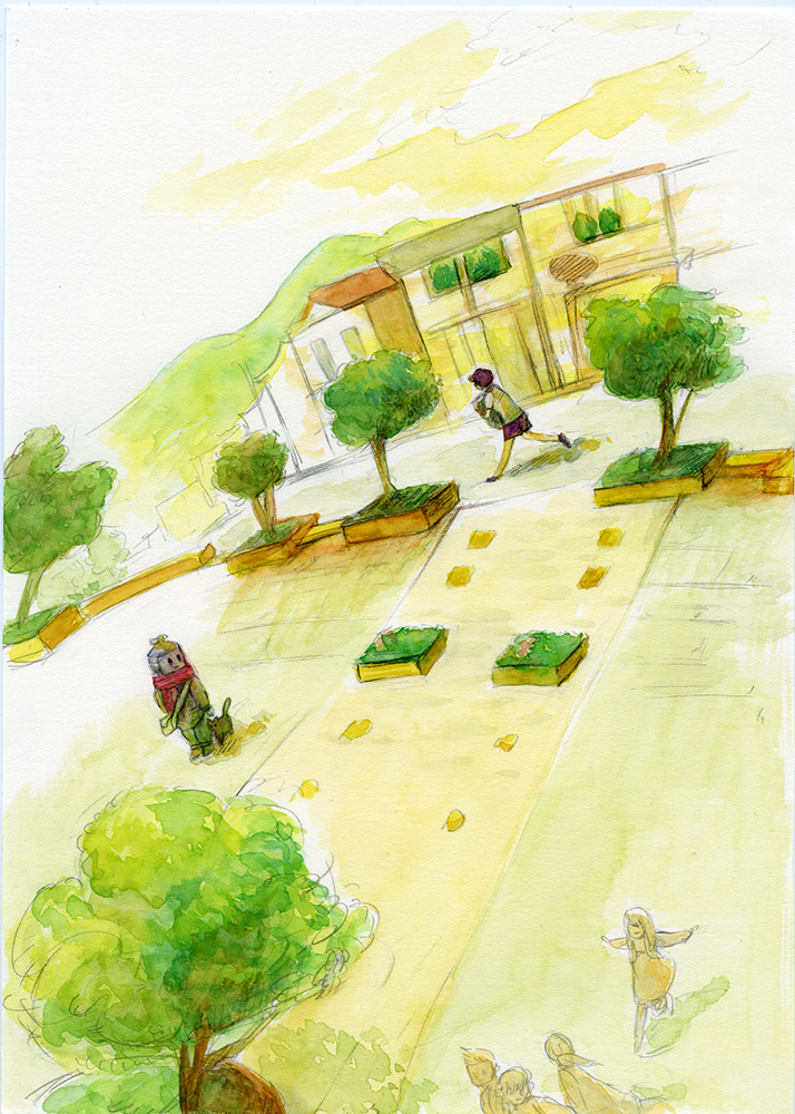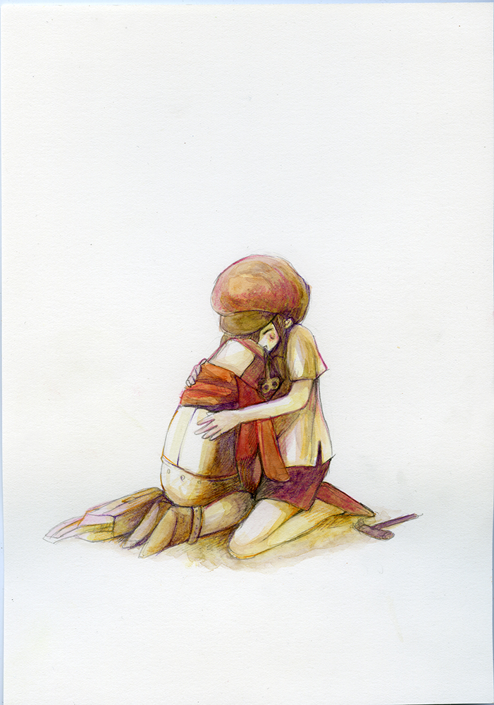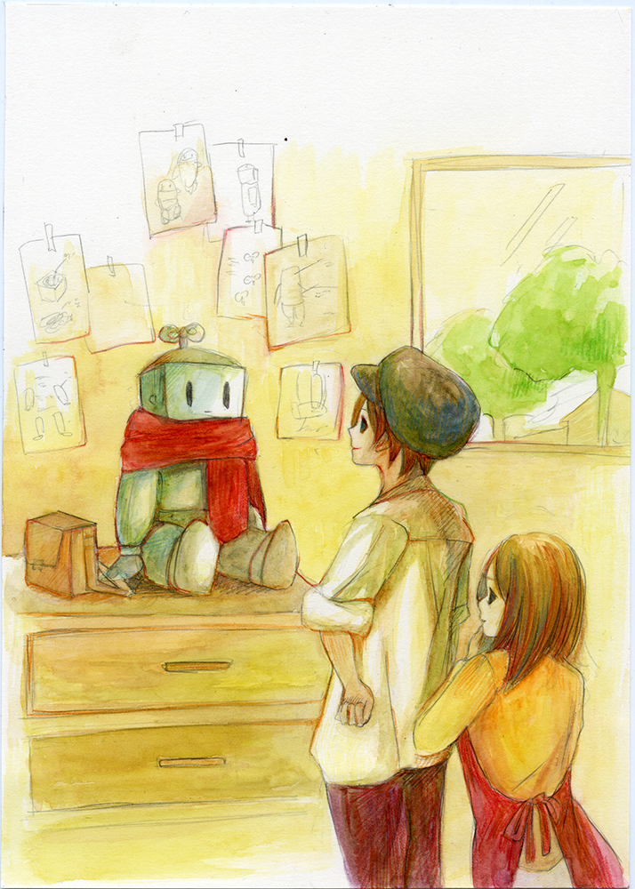 中田沙也加さまの著作【el】の表紙、挿絵を担当させていただきました。孤独な少年とロボットの心の触れ合いを描いた作品です。 作品の持つ柔らかな雰囲気を透明水彩絵の具で表現しました。 キャラクターのイメージや世界観を共有するため、カラーのラフ画を数点制作しました。